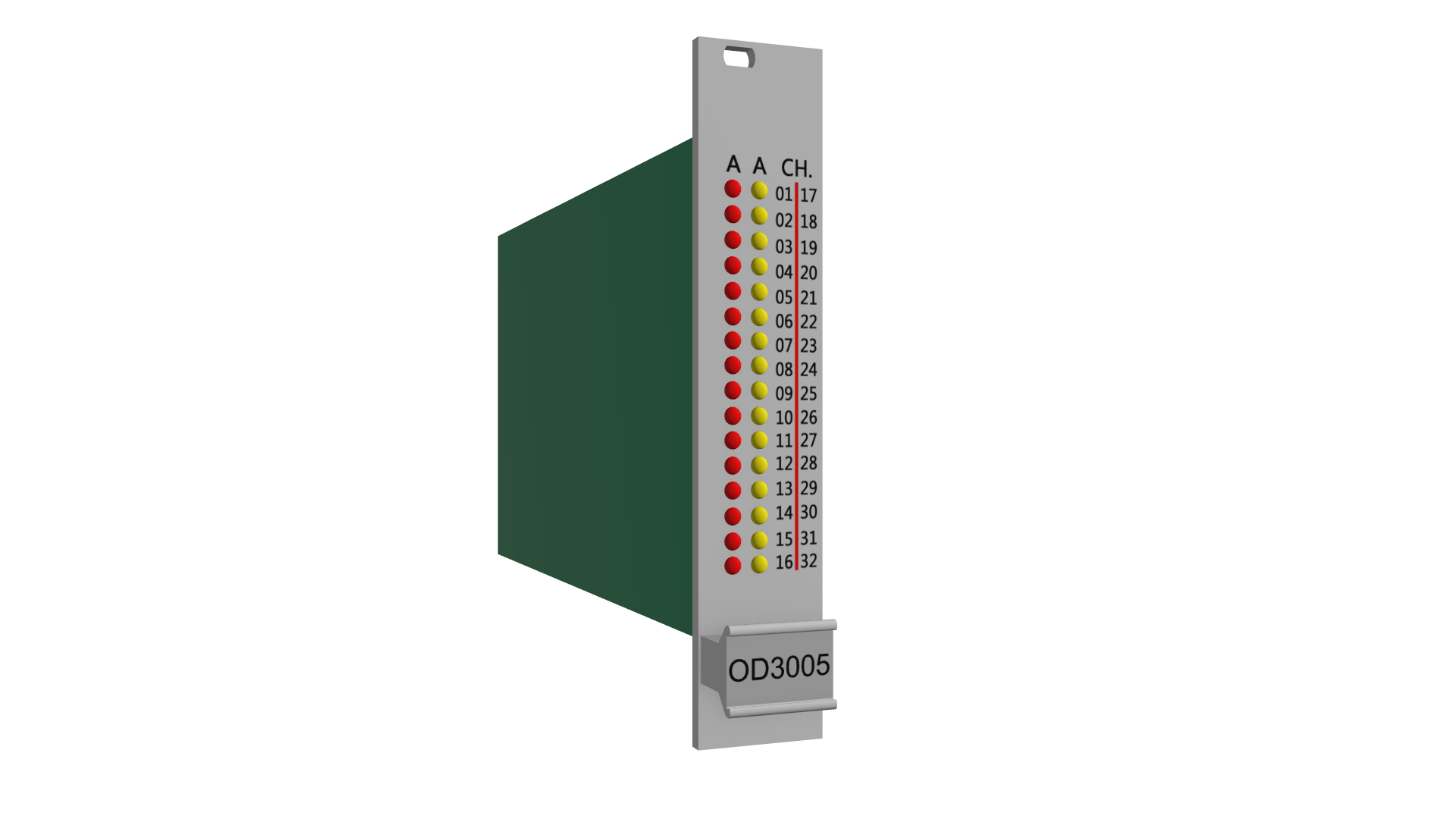 Card with 32 open collector, non-controlled Output channels of 250mA. This card effects status and functionality checks, but does not monitor the control channels.